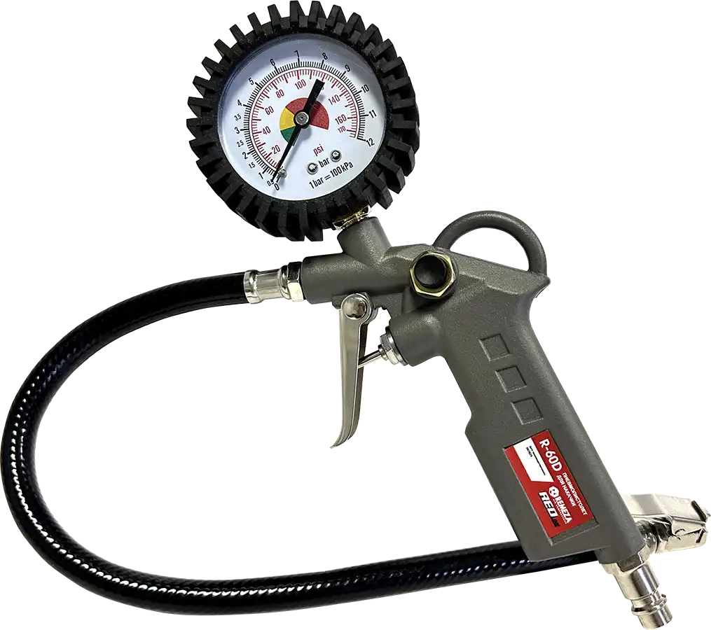 - пневмопистолет для накачки шин с манометром R-60D, с механическим манометром, длина шланга 400 мм;