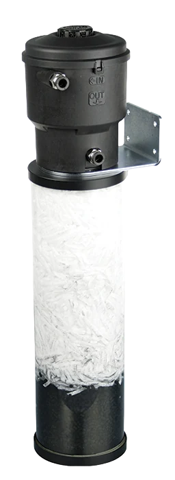 - Поток конденсата, который содержит в основном воду и масло в небольших количествах, течет далее во вторую камеру, где установлен элемент с активированным углем. Там происходит окончательный процесс адсорбции масла.