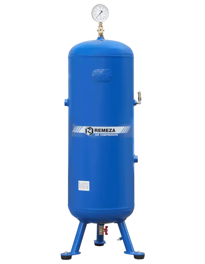 - Объём ресивера — в линейке бренда REMEZA представлены ресиверы объемом 270, 500 и 900 литров в вертикальном исполнении. Этот показатель напрямую зависит от производительности установки. Чем она выше, тем вместительнее должен быть ресивер. Оптимальный объём составляет 30% от производительности компрессора.
